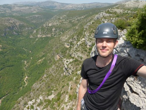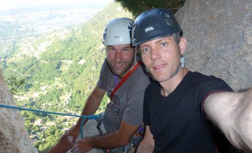 Here are some pictures of the Péril Jaune long climbing route, one of Saint Jeannet’s most classical multi-pitch climbs, this time climbed with Bjorn Buckwalter from Sweden. The Péril Jaune was first climbed in 1957 by F. Cravoisier and M. Dufranc. It crosses the west face of Baou de Saint Jeannet in a logical and esthetic climbing of 200m with featured rocks and many diedrals. Graded 6a, the climbing is not so easy, even today and young climbers could be rather surprised to see the level of this route climbed 60 years ago!
